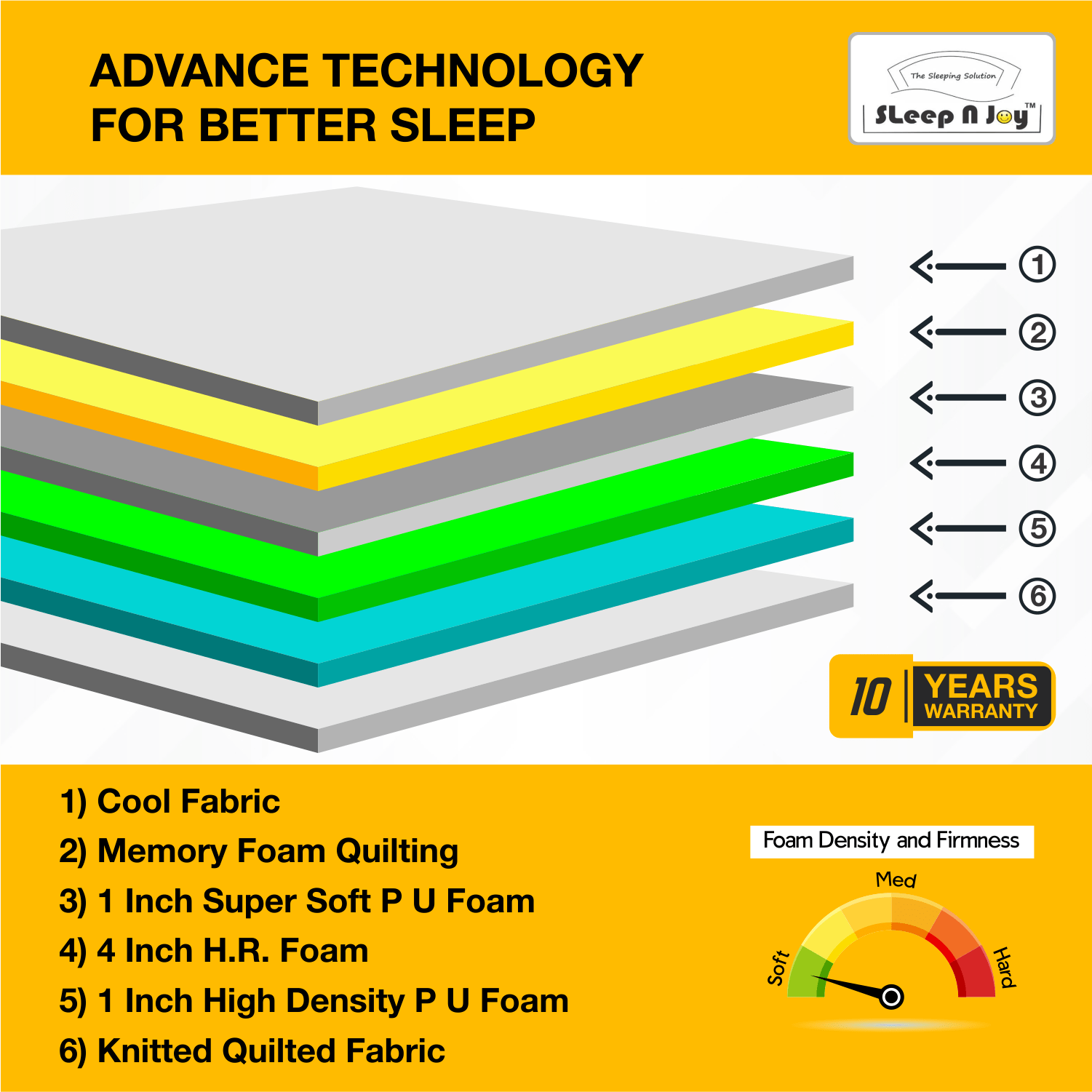 Sleep in style and supreme comfort with the Sleepnjoy ELEGANT mattress – a perfect blend of luxurious quilting and durable support layers, engineered for deep, restorative sleep. Designed using premium knitted memory quilted fabric and multi-layered foam construction, ELEGANT brings softness and orthopedic-grade support right into your bedroom