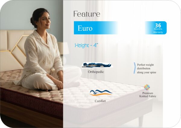 Upgrade your sleep experience with the Sleepnjoy EURO Mattress – a perfect fusion of comfort, support, and durability. Designed with premium materials and layered with precision, the EURO model ensures balanced spinal alignment and lasting resilience for all sleeping styles.