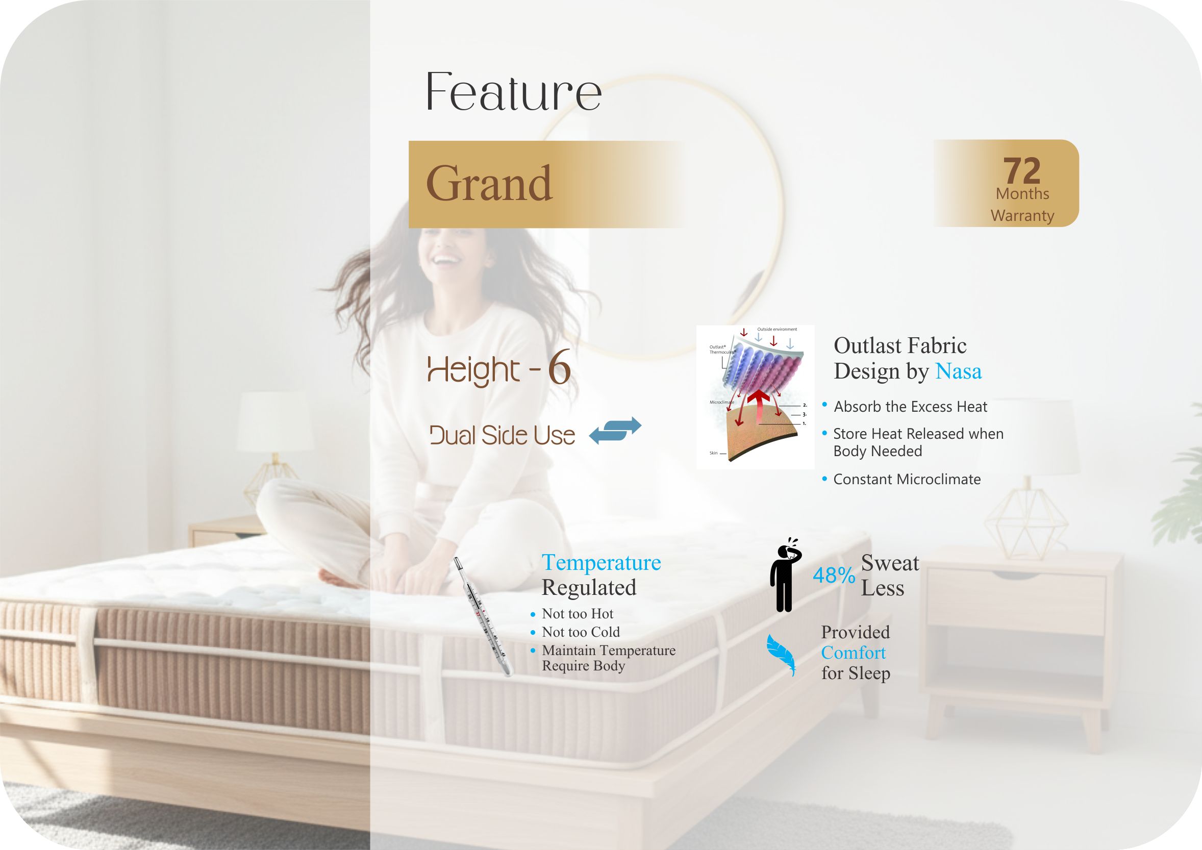 The supportive middle layer ensures orthopedic firmness, making GRAND ideal for those who seek relief from back or joint discomfort.