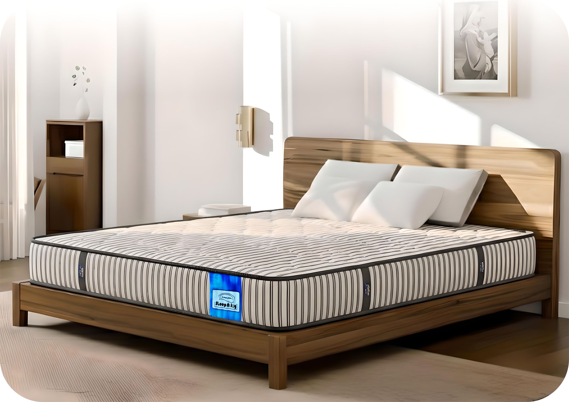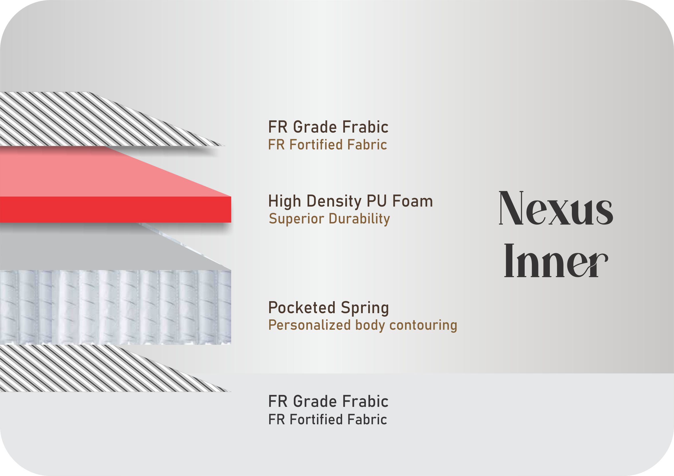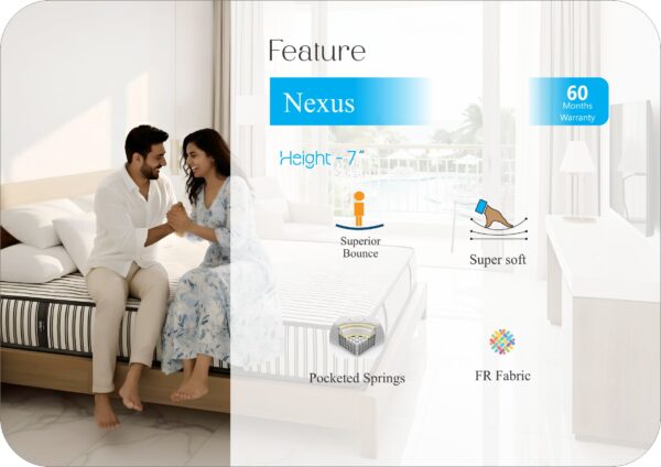 Introducing the NEXUS by Sleepnjoy – a perfect fusion of plush comfort and firm support, designed for deep, refreshing sleep. Featuring a luxurious knitted quilted finish, dual layers of soft and high-density PU foam, and an advanced pocketed spring core, NEXUS delivers hotel-grade comfort at home.