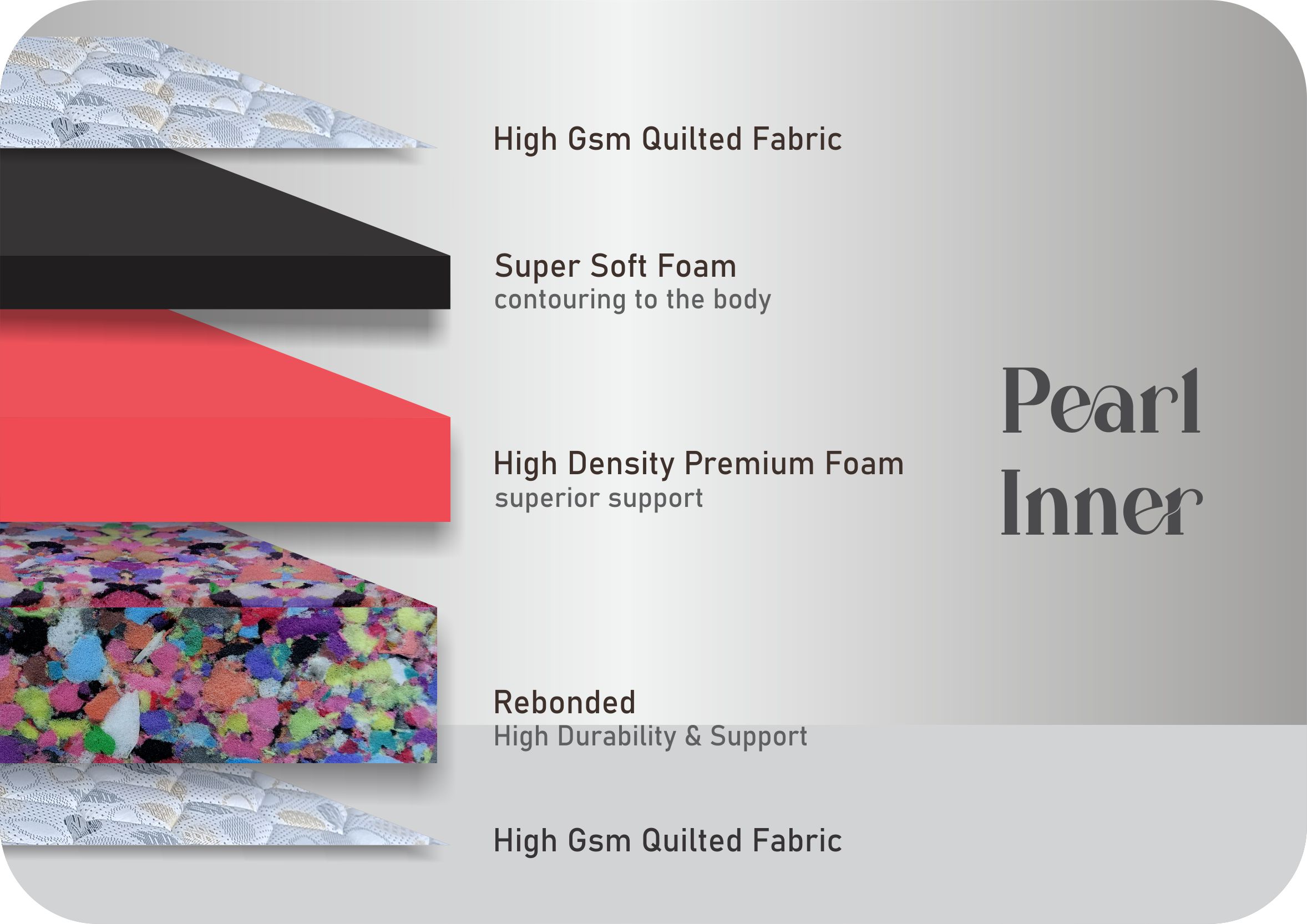 - High-Density Premium Rebonded – Acts as a robust core to ensure long-lasting durability and optimal spinal alignment.